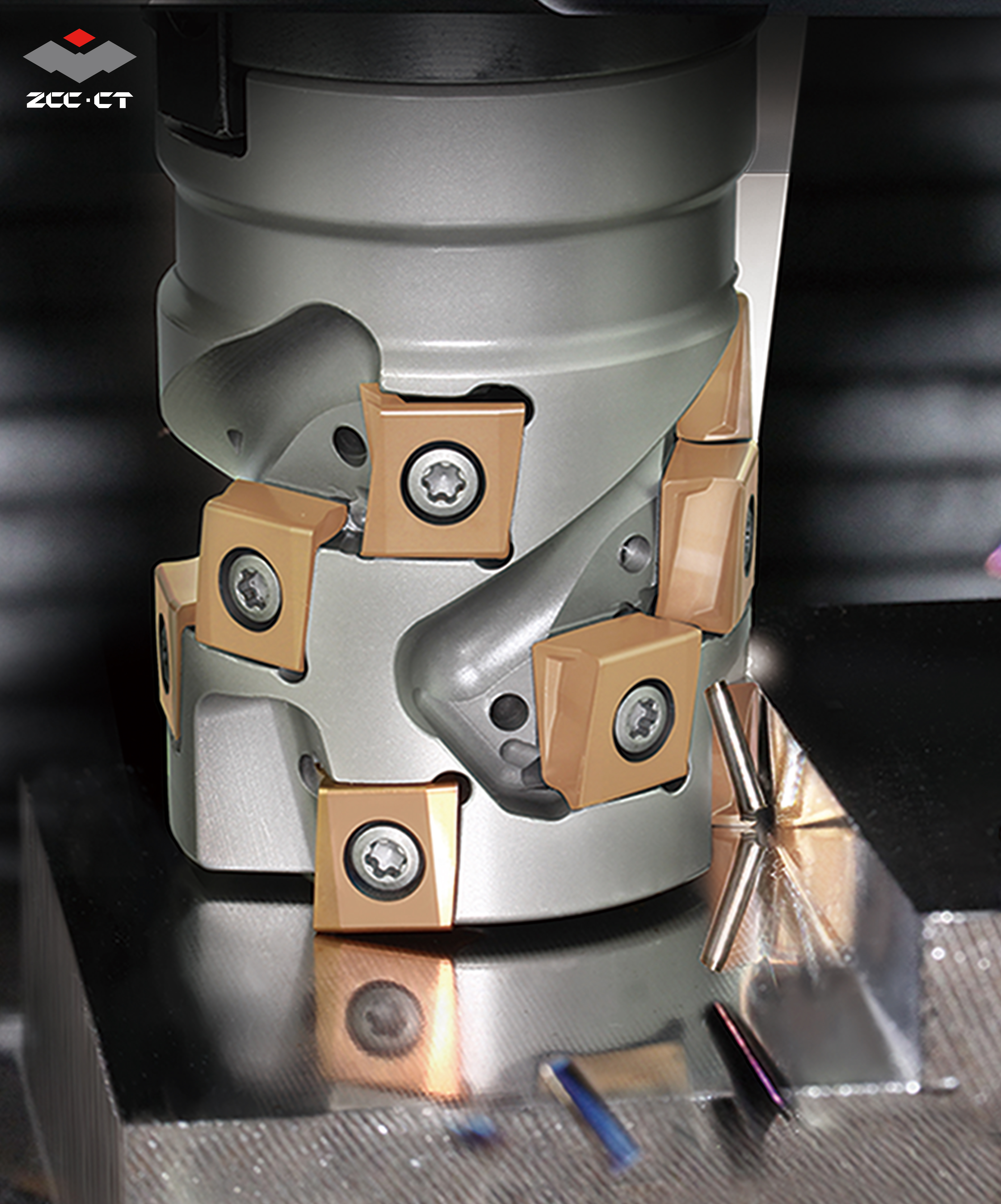 我司EMP09系列方肩銑刀,刀片立裝設(shè)計沿切削力方向硬質(zhì)合金體積大,使每齒進給量較