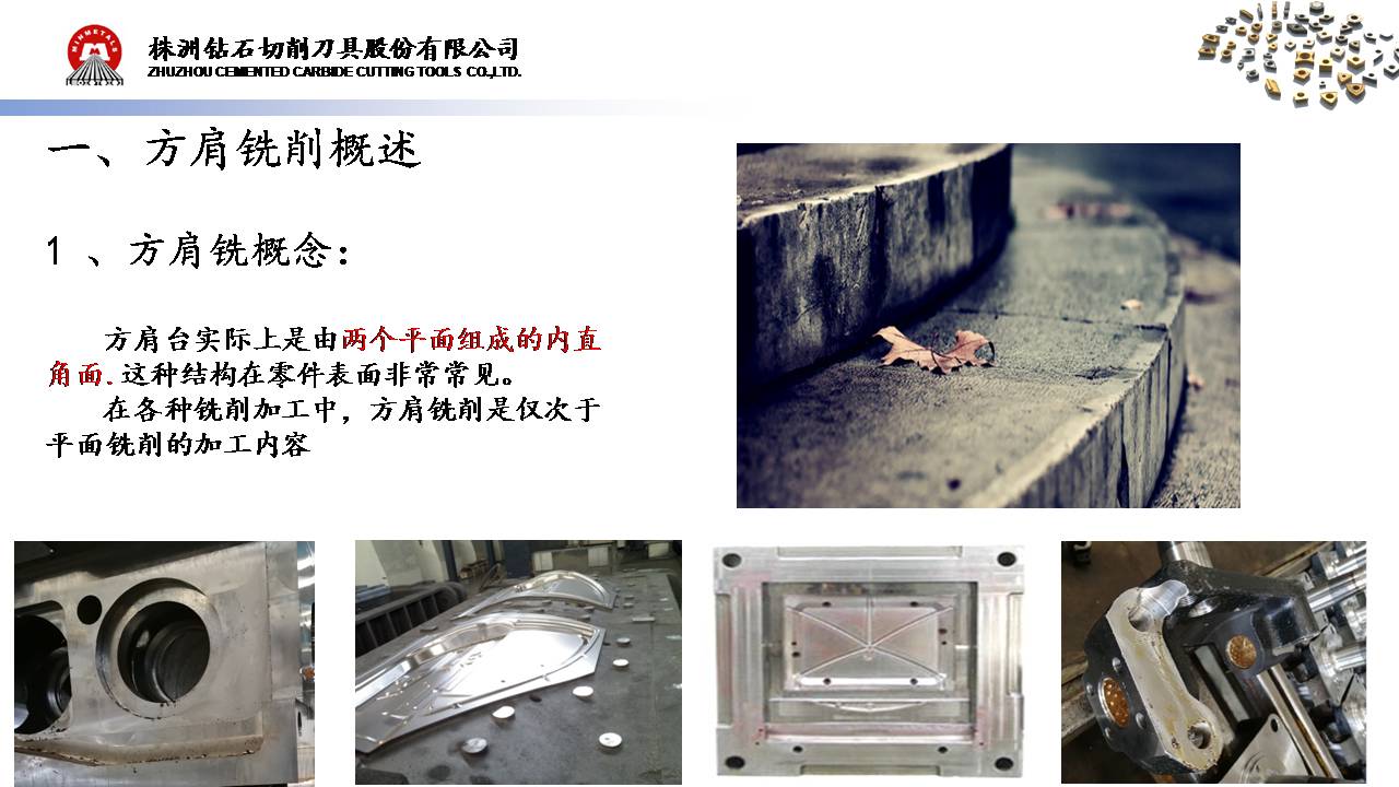 方肩臺階一般分為普通方肩臺階、較深方肩臺階和槽銑加工,普通方肩臺階加工主要考慮側(cè)刃切削深度不大的情況下,主要考慮切寬,可以按照正常的切削參數(shù)加工,當加工較深臺階或者槽銑加工時,需要合理的選用切削深度和寬度,并采用分層加工或者是刃長較長的玉米銑刀進行加工。