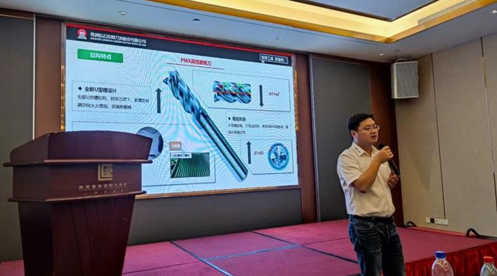 會(huì)議由廣東區(qū)域技術(shù)經(jīng)理陳帥主持,廣東區(qū)域區(qū)域經(jīng)理 葉宏致歡迎辭,他代表公司對(duì)參加會(huì)議的客戶朋友表示了感 謝。隨后,核心產(chǎn)品線市場(chǎng)部部長(zhǎng)尹兵介紹了公司的發(fā)展歷 程,規(guī)模產(chǎn)品線市場(chǎng)部市場(chǎng)經(jīng)理唐親君分享了整體硬質(zhì)合金 刀具的新品與成功案例,規(guī)模產(chǎn)品線市場(chǎng)部部長(zhǎng)張海對(duì)整體 刀具新品介紹進(jìn)行了進(jìn)一步講解,并對(duì)產(chǎn)品線的市場(chǎng)策略進(jìn) 行了詳細(xì)的宣講。核心產(chǎn)品線市場(chǎng)部市場(chǎng)經(jīng)理趙勛介紹了數(shù) 控車削、銑削刀片及淺孔鉆等新品,并分享了成功案例。最