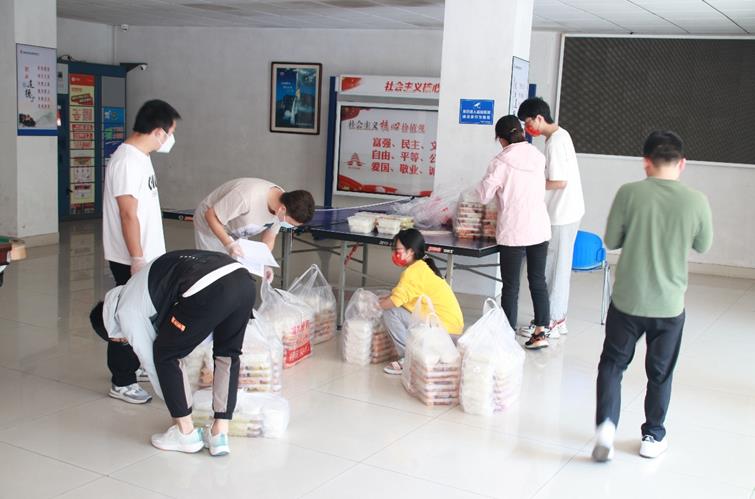 后勤保障組主要負責全體人員的餐飲無接觸配送、采購物資的分發(fā)等。每日訂餐結(jié)束后,志愿者從后臺導出訂餐人員信息,整理出每樓層的總訂餐數(shù)、房間號及份數(shù)清單,為餐食的分發(fā)提前做好準備。志愿者取餐后按清單快速分揀各樓層所需餐食,各樓層餐食分配完成后,統(tǒng)一通知開門取餐,極大的減少了員工之間的接觸,大幅提高了配餐的效率,確保員工可以吃上熱乎的午餐和晚餐。目前每日送餐量接近400份,單樓層最大配送量超過80份,經(jīng)過配送流程優(yōu)化后,每層在5-8min即可完成無接觸送餐,效率大大提高。