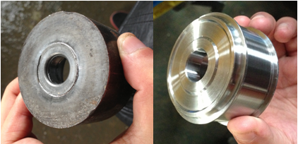 Cutting depth is 2 mm in total,completed by 4 passes. As rough is cratered in inner wall, products of Company A are prone to edge chipping with average machining capacity of 26 pieces/edge. ZCC·CT products work stably, completing 55 pieces/edge, with evidently superior performance.