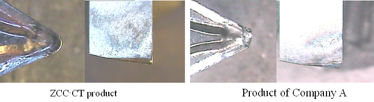 ZCC·CT product  (Normal wear) Product of Company A  (Edge chipping)