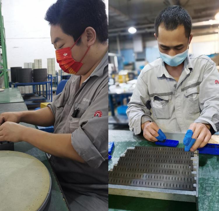 駐廠當(dāng)日,由于時(shí)間緊迫,保證品種的毛坯供應(yīng)成了當(dāng)務(wù)之急。為發(fā)揮駐廠生產(chǎn)團(tuán)隊(duì)的最大生產(chǎn)效率,盡快完成銷(xiāo)售催急品種的生產(chǎn),在嚴(yán)格遵守疫情防控要求的情況下,駐廠生產(chǎn)團(tuán)隊(duì)積極配合,制定生產(chǎn)組織方案,“無(wú)死角”做好生產(chǎn)保障工作,確保品種的及時(shí)交付。在人員相對(duì)緊缺的情況下,駐廠人員為盡快完成催急品種,主動(dòng)請(qǐng)纓延長(zhǎng)上班時(shí)間。閉環(huán)生產(chǎn)第一天,刀片一廠碩果累累,壓制工序超額完成11個(gè)品種的壓制;燒結(jié)工序在人員數(shù)量減半的情況下維持6臺(tái)壓力爐和1臺(tái)真空爐的正常運(yùn)行,保障壓制當(dāng)天壓坯和燒結(jié)產(chǎn)品的及時(shí)轉(zhuǎn)出。