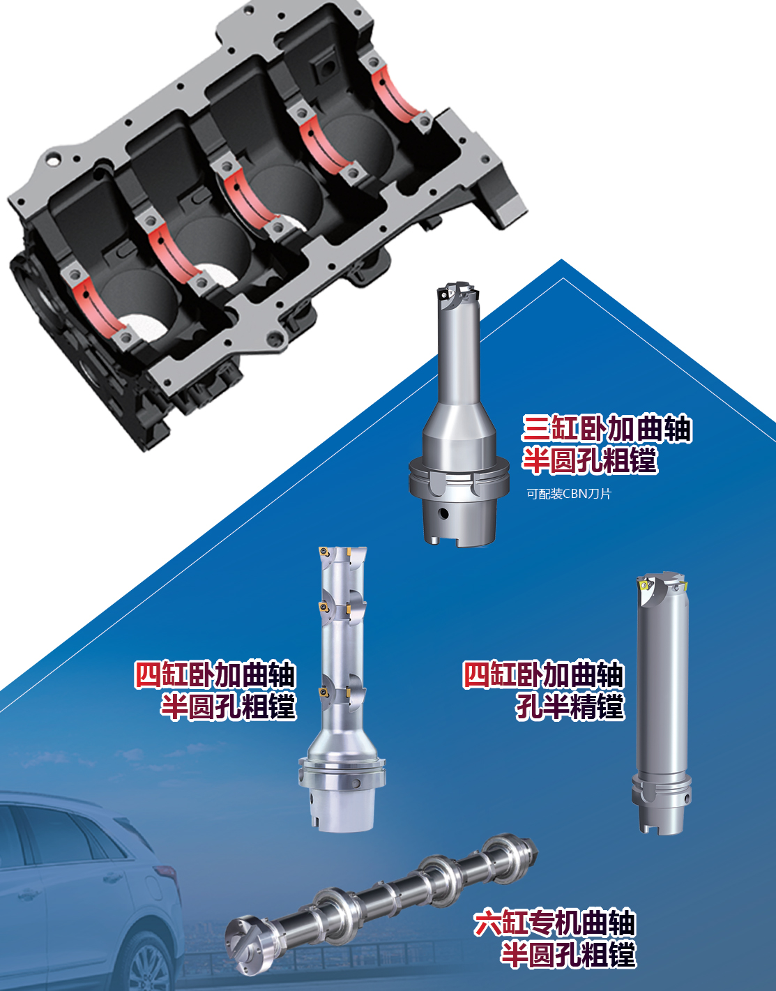 曲軸孔粗銑球頭刀,采用標準系列切削刀片,提供更小的切削功率以及更加精確的擬合精度。