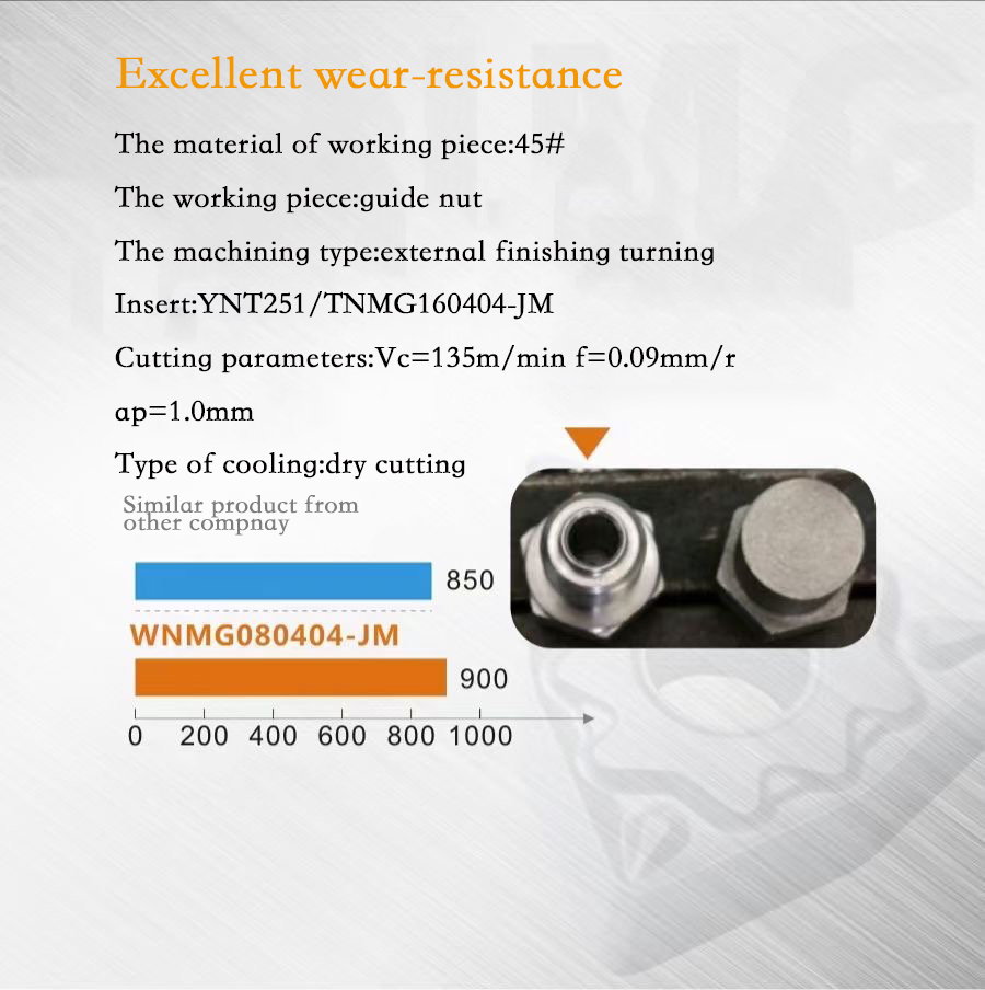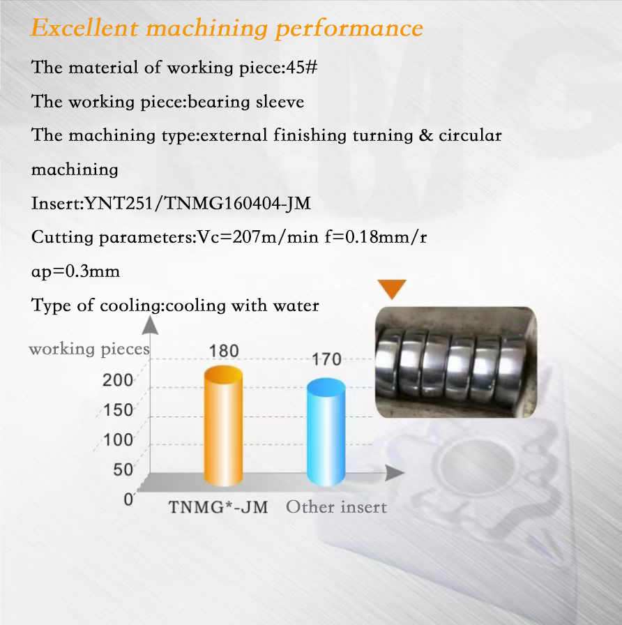 Excellent chip breaking geometry, perfect chip control and longer machining life.