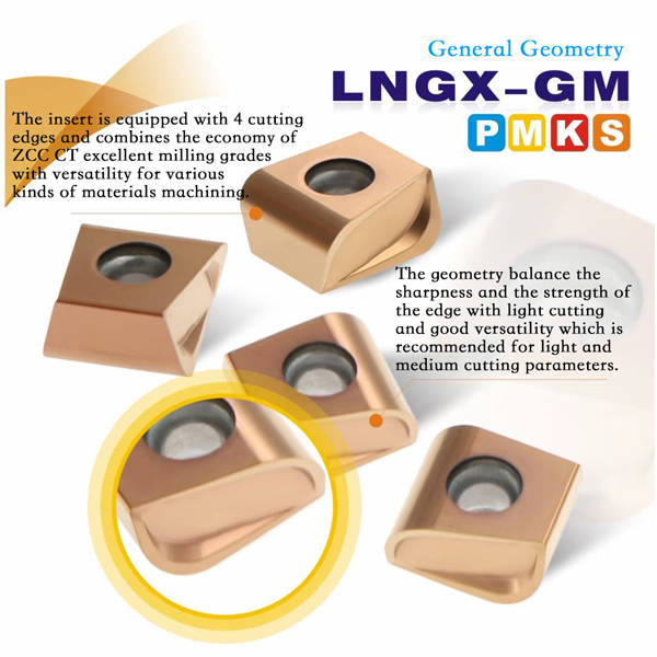 The insertis equipped with 4 cutting edges and combines the economy of ZCC CT excellent milling grades with versatility for various kinds of materials machining.